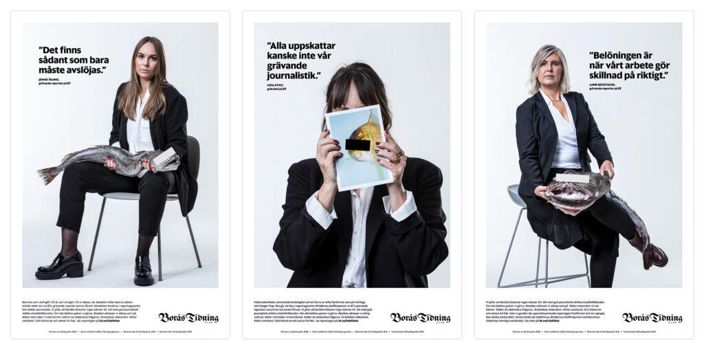 Vi valde att lyfta fram de grävande journalisterna och göra dem till ”hjältar”. Fast med lite tvist. Brödtexten var en teaser från det verkliga reportaget. Marulken som syns på en av bilderna vägde 12 kilo!