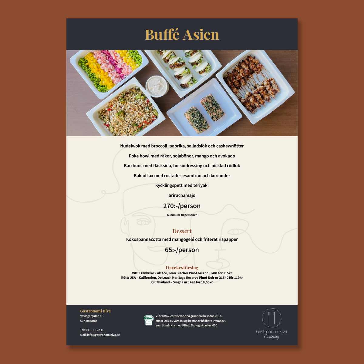 Skapa kommunikation som känns som en väl sammansatt meny. Smakfullt, balanserat och personligt. Lättmanövrerat och inspirerande trots många budskap. Från enklare luncher och påkostade helgmenyer till catering för stora sällskap.